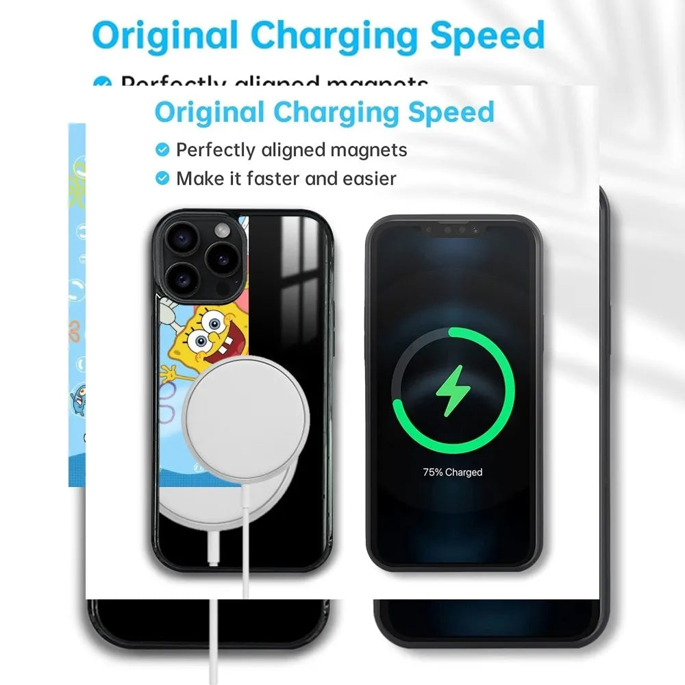 🧽 Cartoon S-SpongeBob Magnetic Phone Case – Mirror & Magsafe Compatible for iPhone Series 📱✨